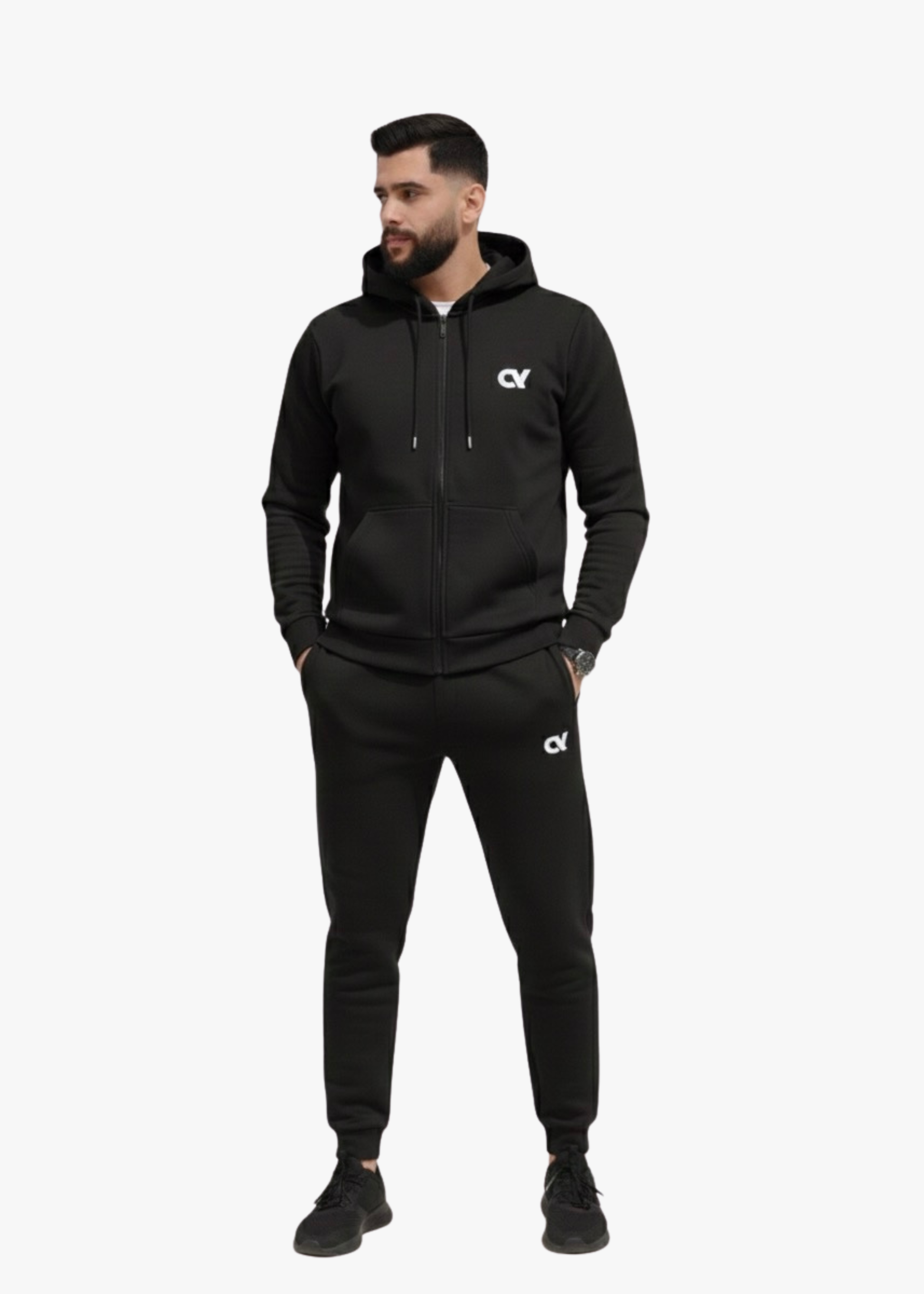 Men’s Premium Winter Full-Zip Hoodie Tracksuit Set - Black