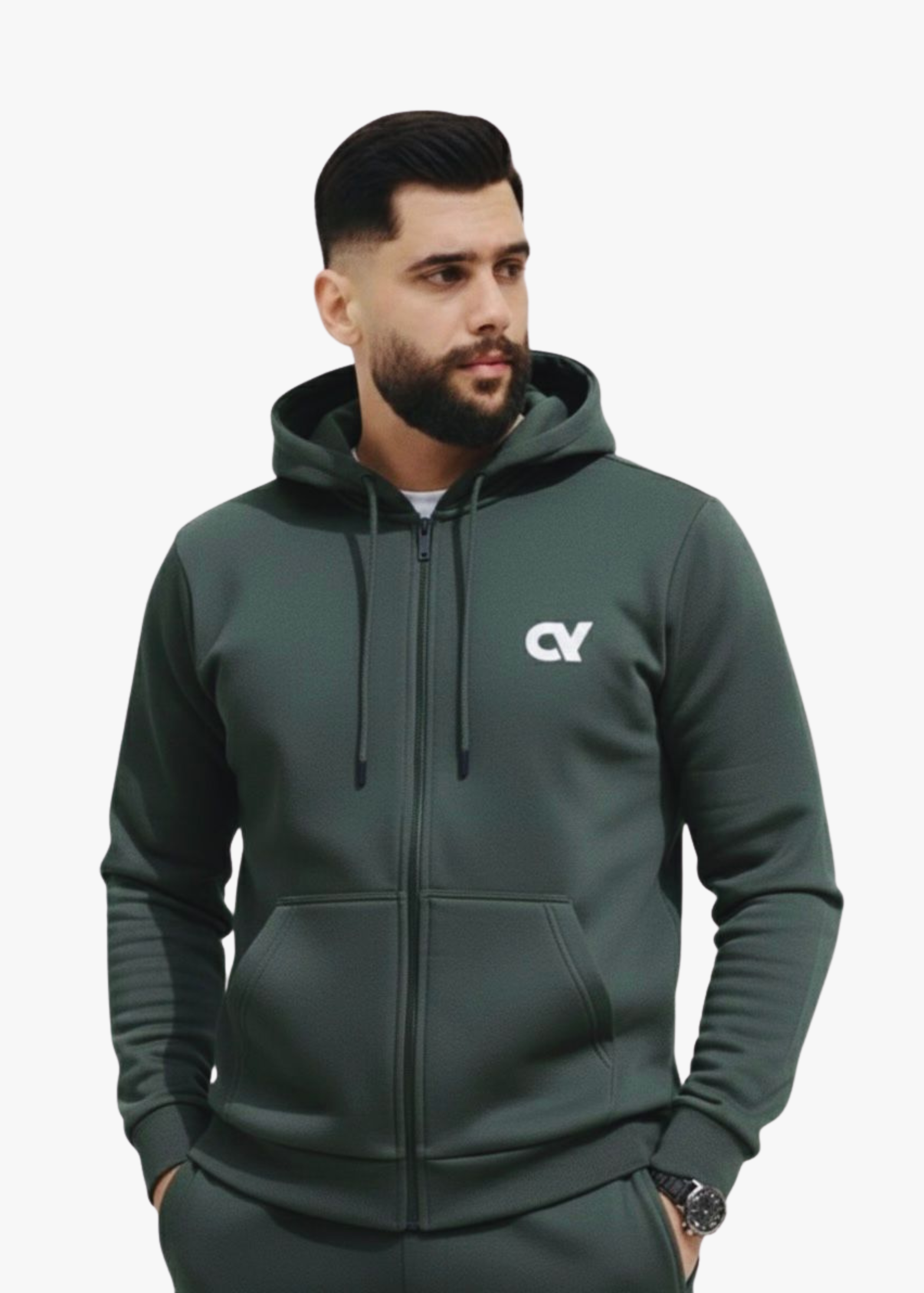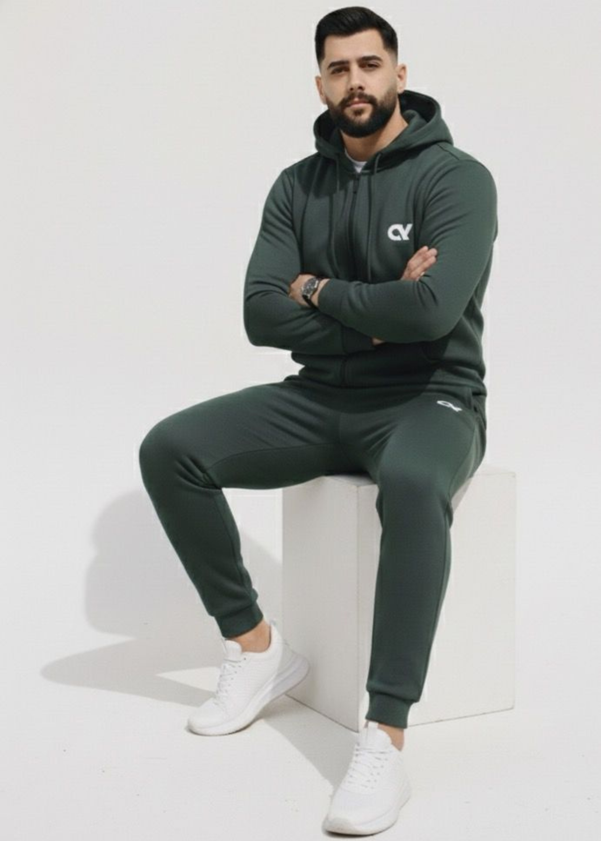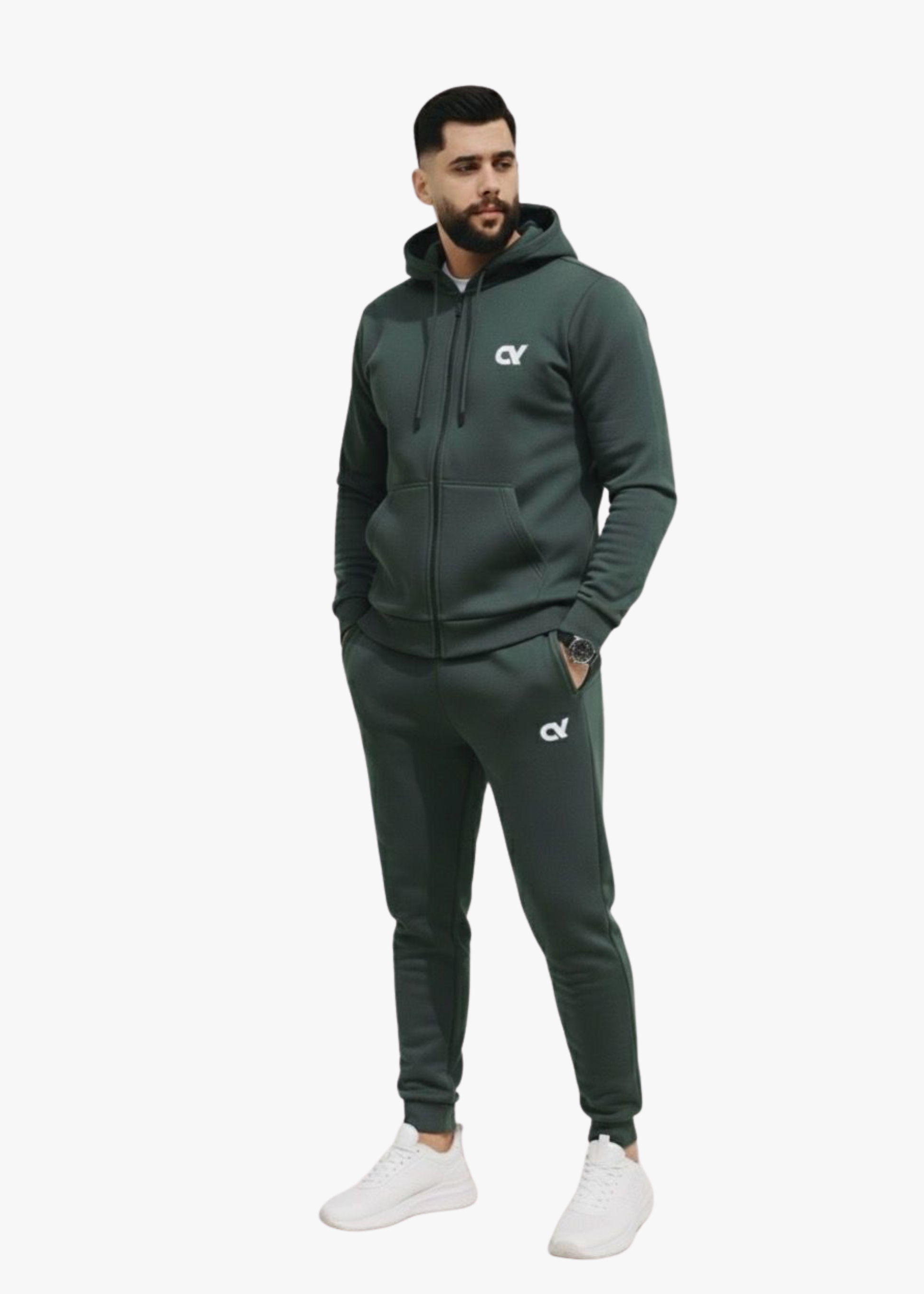 Men’s Premium Winter Full-Zip Hoodie Tracksuit Set - Sage Green